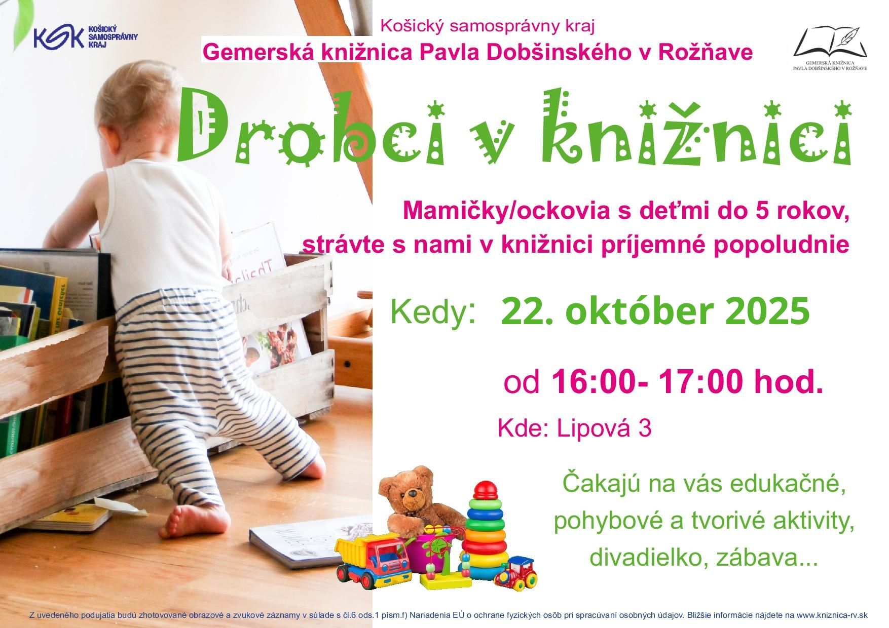 Pravidelné popoludnia v knižnici pre rodičov s deťmi do 5 rokov.