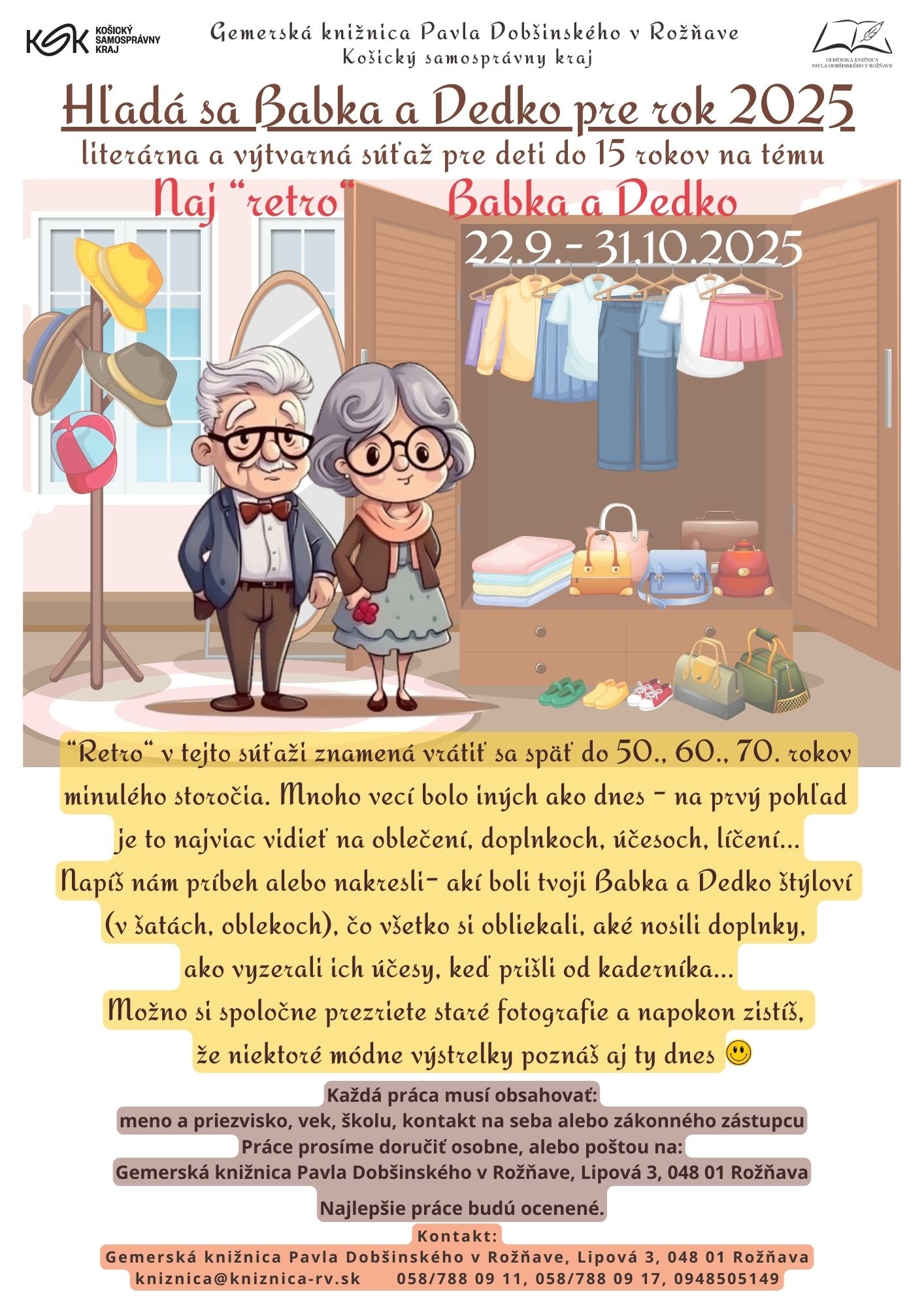 Hľadá sa Babka a Dedko pre rok 2025- literárna a výtvarná súťaž pre deti do 15 rokov na tému: Naj “retro“ Babka a Dedko