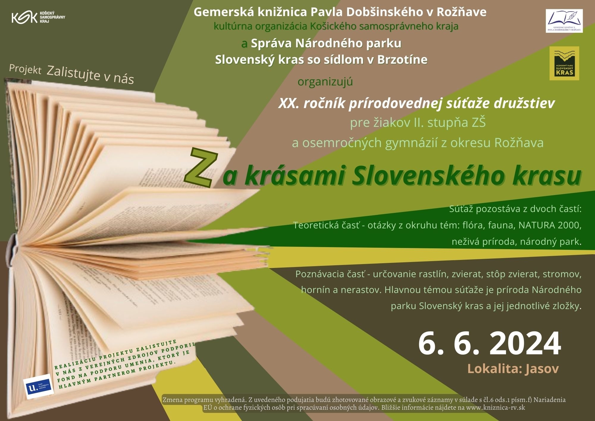 Gemerská knižnica Pavla Dobšinského v Rožňave spolu so Správou Národného parku Slovenský kras so sídlom v Brzotíne organizujú XX. ročník prírodovednej súťaže družstiev „Za krásami Slovenského krasu“