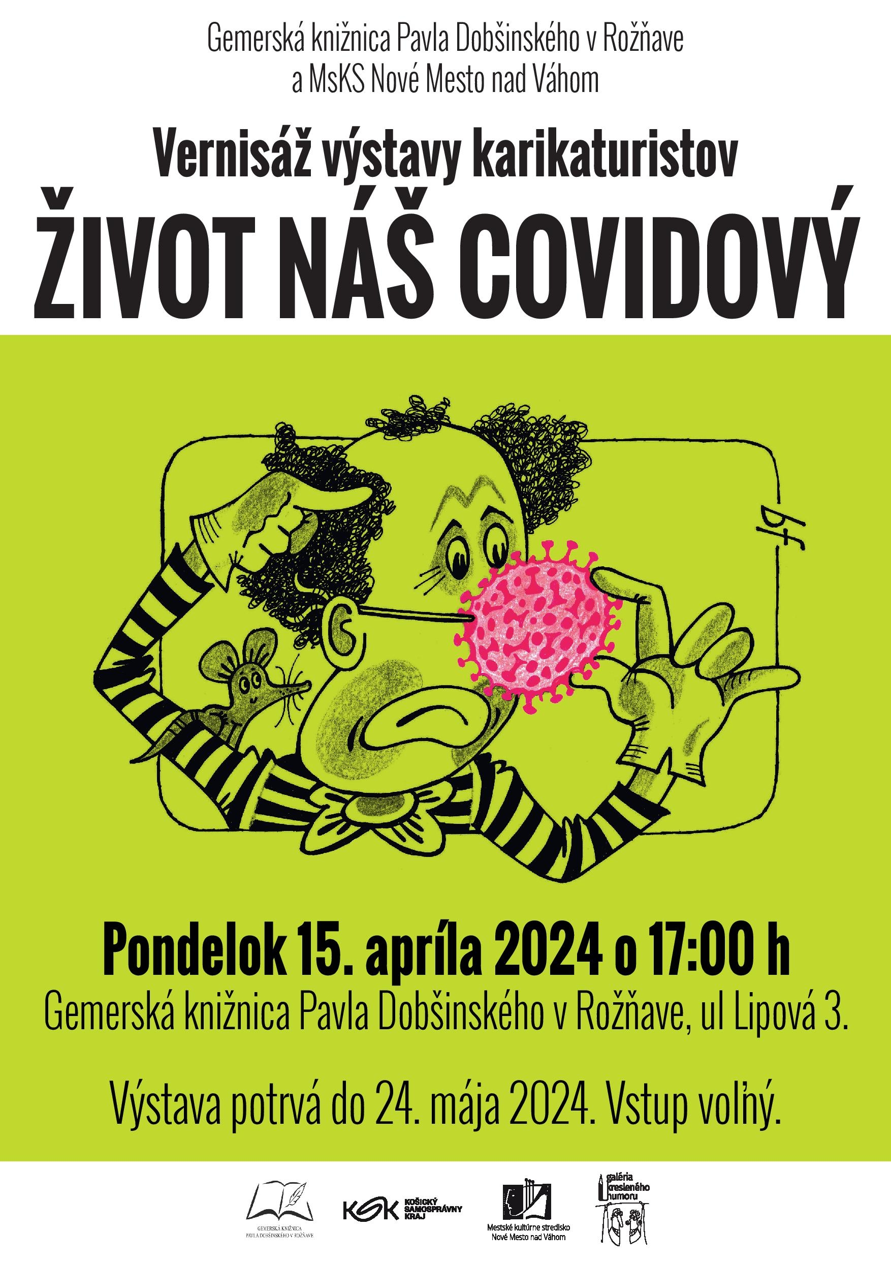 Gemerská knižnica Pavla Dobšinského v Rožňave v spolupráci s Mestským kultúrnym strediskom a Galériou kresleného humoru Nové Mesto nad Váhom, pripravili výstavu originálnych prác slovenských a českých karikaturistov pod názvom Život náš covidový. Smiech pôsobí pozitívne na celé telo aj dušu. A preto nikdy nie je na škodu pohybovať sa vo veselej spoločnosti, prečítať si vtipnú knihu alebo si pozrieť dobrú komédiu, či výstavu. Príďte si prostredníctvom skvelých karikaturistov zaspomínať na časy nie tak minulé a nie tak ľahké, koronové.